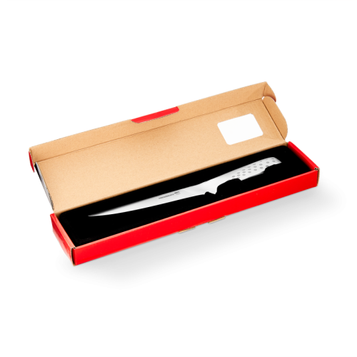 Ergonomická rukojeť byla navržena tak, aby poskytovala bezpečný úchop i v případě, že máte mokré ruce, což je při práci s rybami zásadní. S tímto nožem se příprava surovin před grilováním stane rychlou a precizní záležitostí.