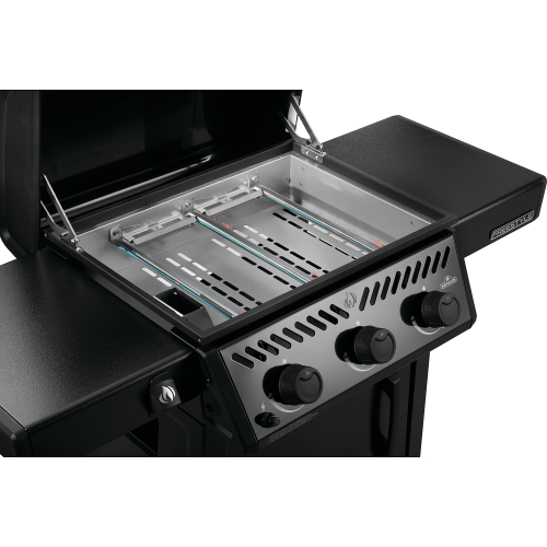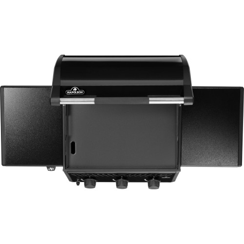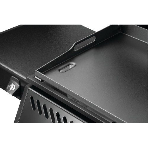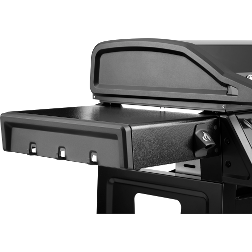 • Chytré řešení prostoru: Sklopné boční police s integrovanými háčky na nářadí poskytují dostatek odkládacího prostoru, ale po skončení grilování šetří místo při skladování.