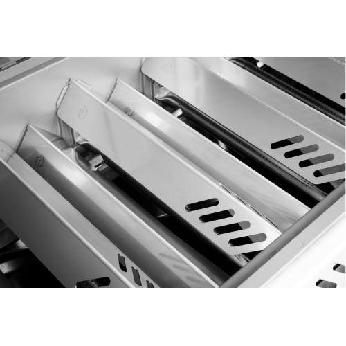 Gril Napoleon Prestige PRO WiFi kryje své hořáky robustními nerezovými flavorizačními lištami, které zachytávají odkapávající tuk a odpařují ho, čímž vzniká bohaté grilovací aroma. Přebytečný tuk je bezpečně odváděn do odkapové misky, což zajišťuje čisté a aromatické grilování.